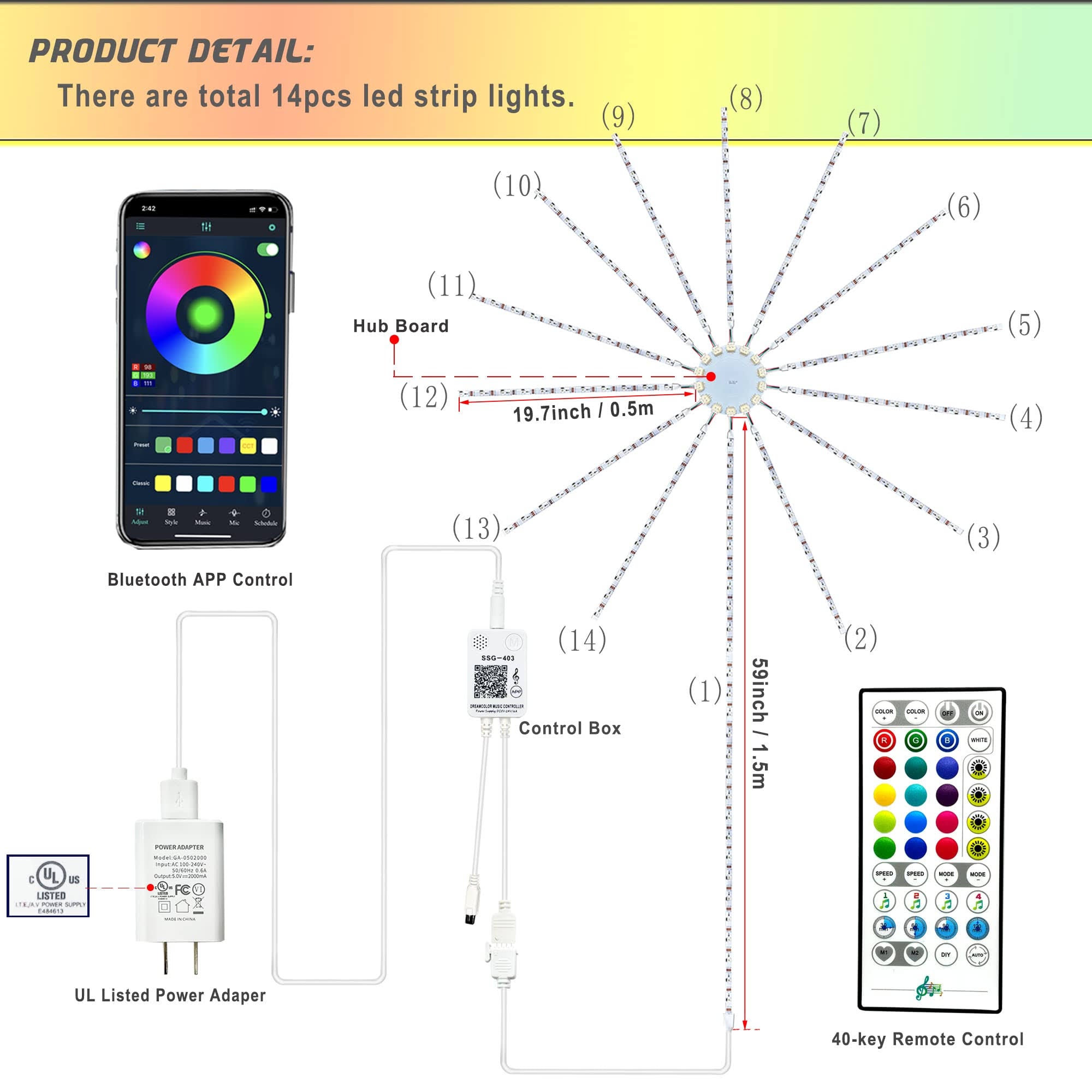 Instalatie LED colorata, tip artificii, cu 3 moduri de lumini si 100 moduri energice